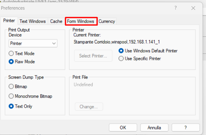 Da qui nel nuovo Menù andare nella tab "Form Windows" cliccando con il tasto sinistro